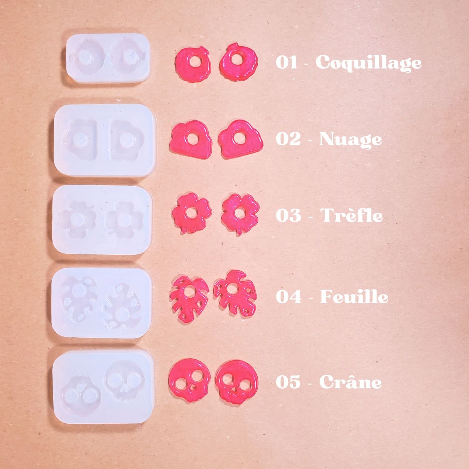 - 6 moules en silicone transparent