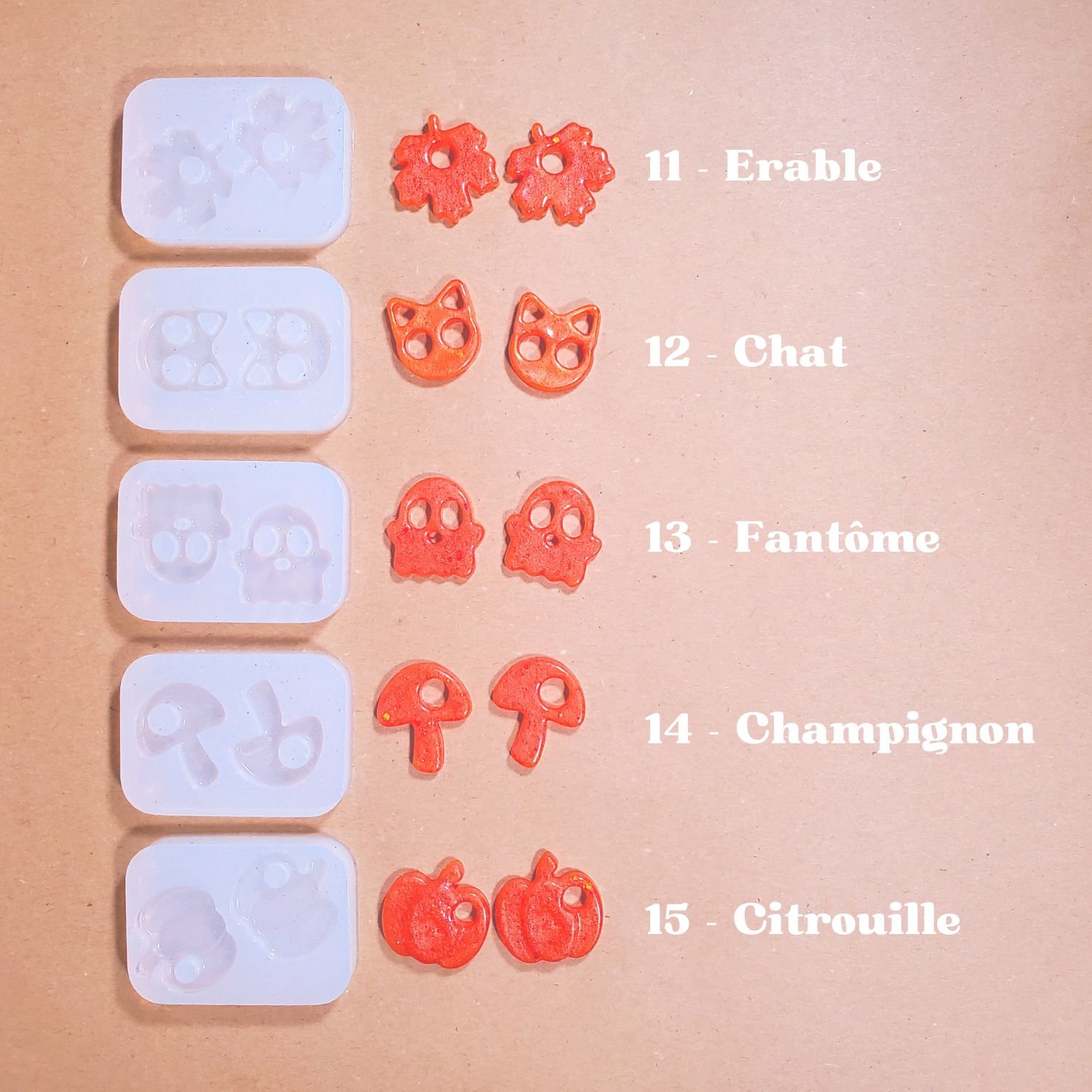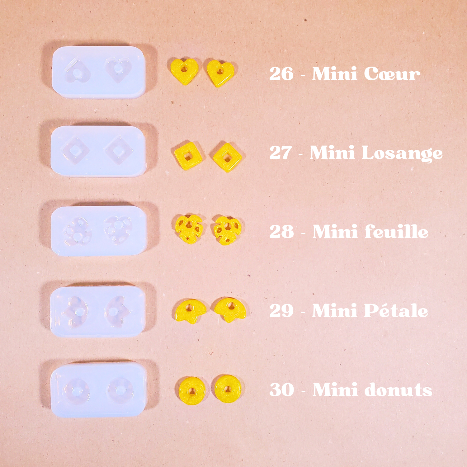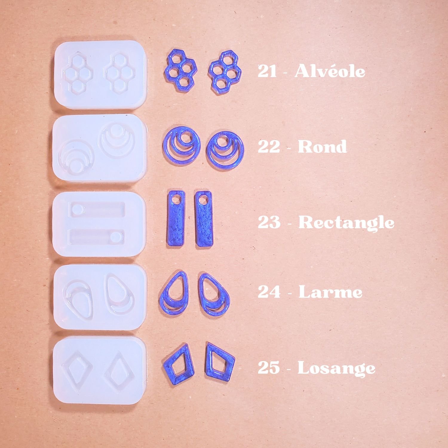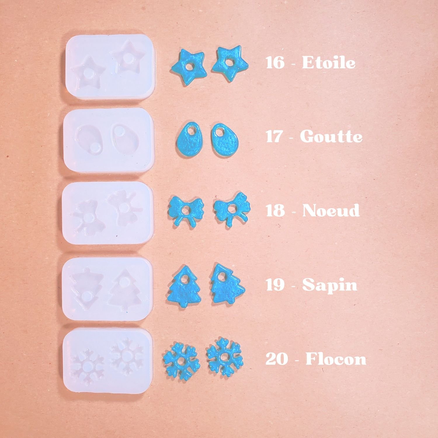 Une fois le kit terminé, gardez vos moules en silicone et commandez des flacons de résine et/ou des pots de paillettes pour recommencer !
